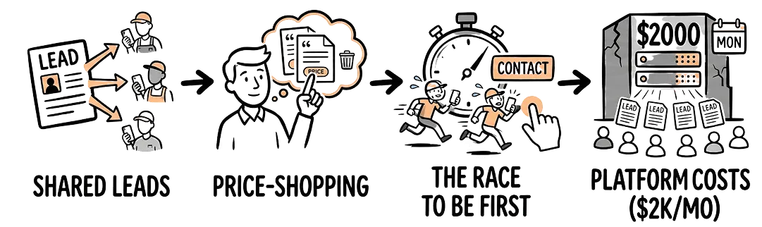 You're paying $100-300 per lead that 10-15 other contractors also received